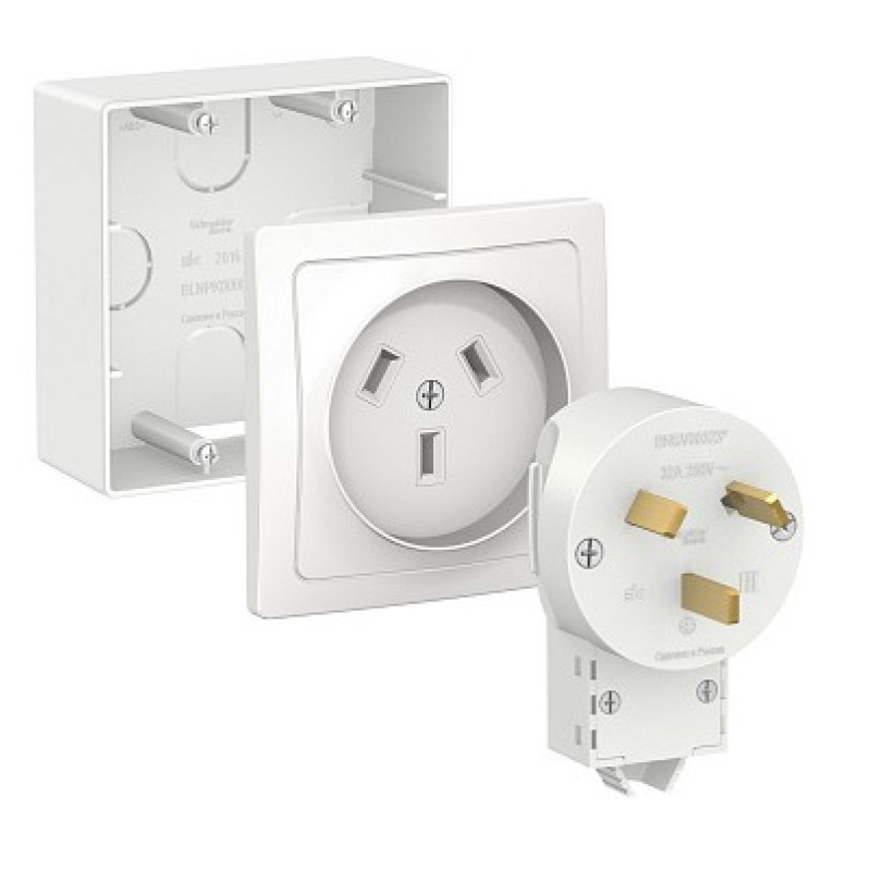 Силовой комплект Systeme Electric BLANCA 32А, 250 В: розетка, вилка, подъемная коробка, белый