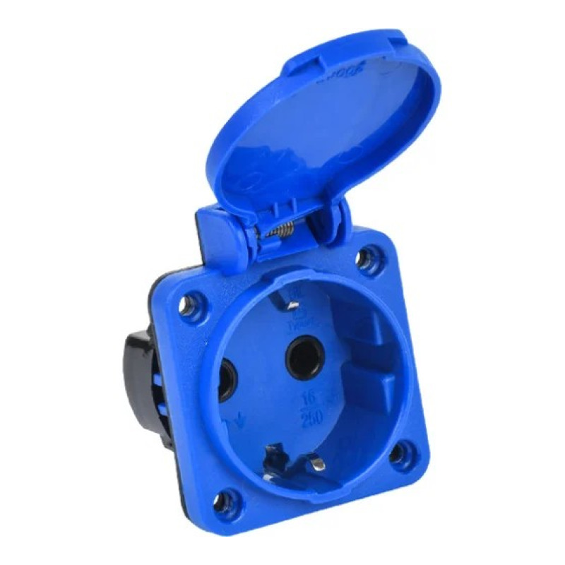 Силовой разъем IEK Magnum 2P+PE 16А IP54 РП12-3 с защ. крышкой с заземлением синий