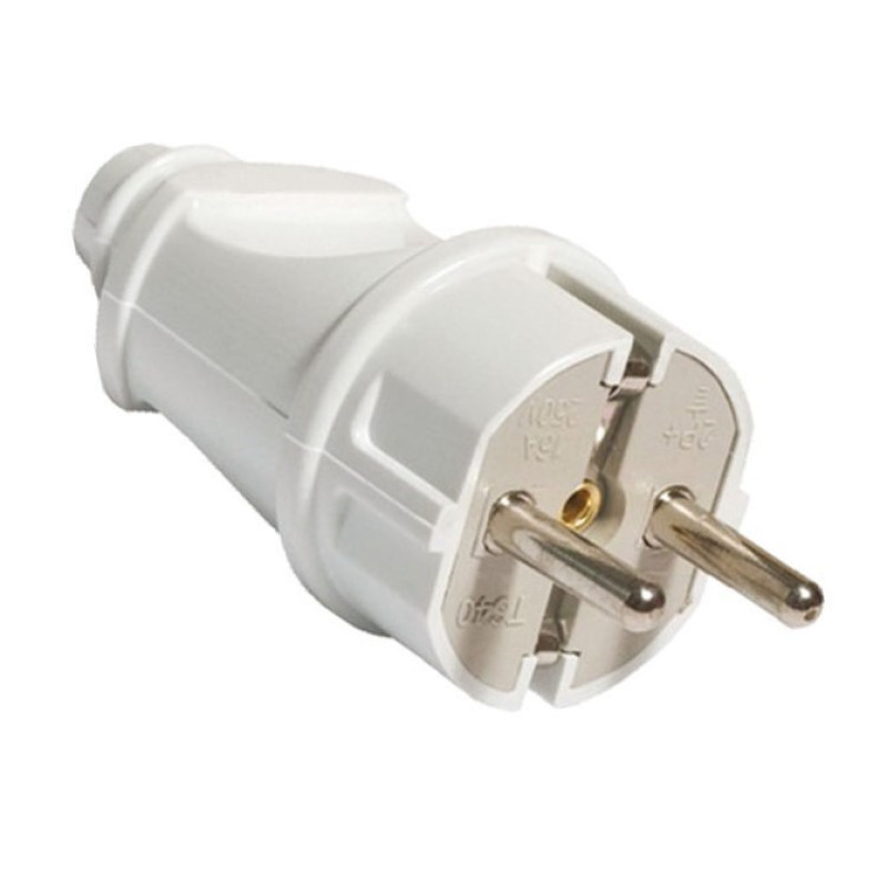 Вилка TDM прямая с/з белая 16А 250В