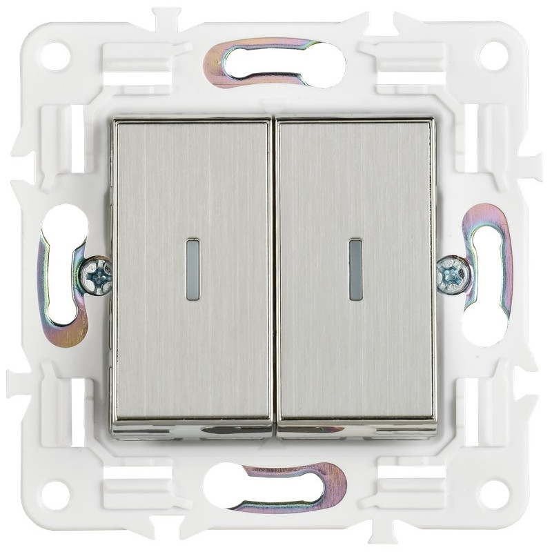 SKANDY Выключатель 2-клавишный проходной с индикацией 10А SK-V10N металл никель IEK