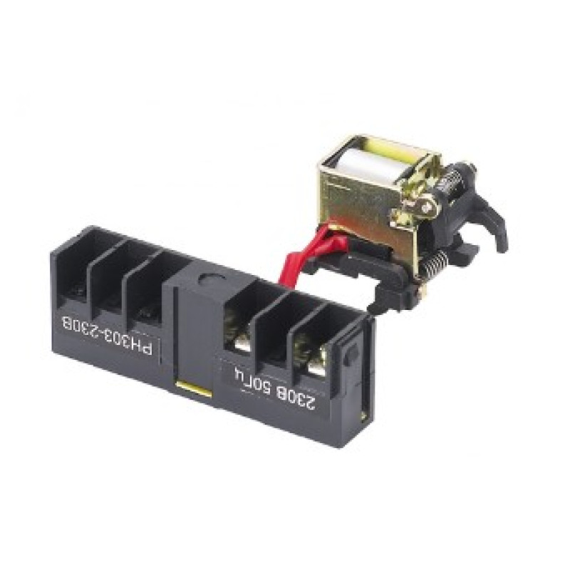Расцепитель независимый РН-303 для автоматических выключателей серии ВА-303 DEKraft, предназначен для дистанционного отключения выключателя, номинальное напряжение - 230 переменного тока, напряжение срабатывания - 70-110% Un, установка в корпус аппарата - слева, присоединяемые провода - 0,25…1,5 кв. мм.