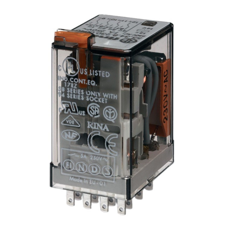 Промежуточное реле Finder с 4ПК 7А (~24В AC) блок.кнопка проверки + механический индикатор