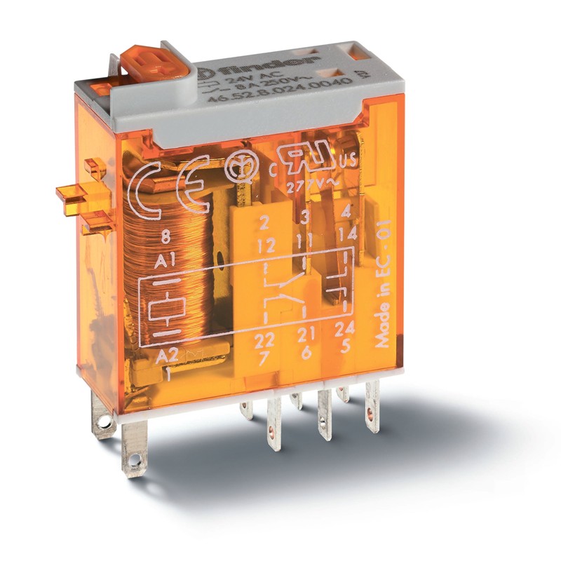 Реле миниатюрное Finder промышленное электромеханич. монтаж в розетку или наконечники Faston (2.5х0.5мм)