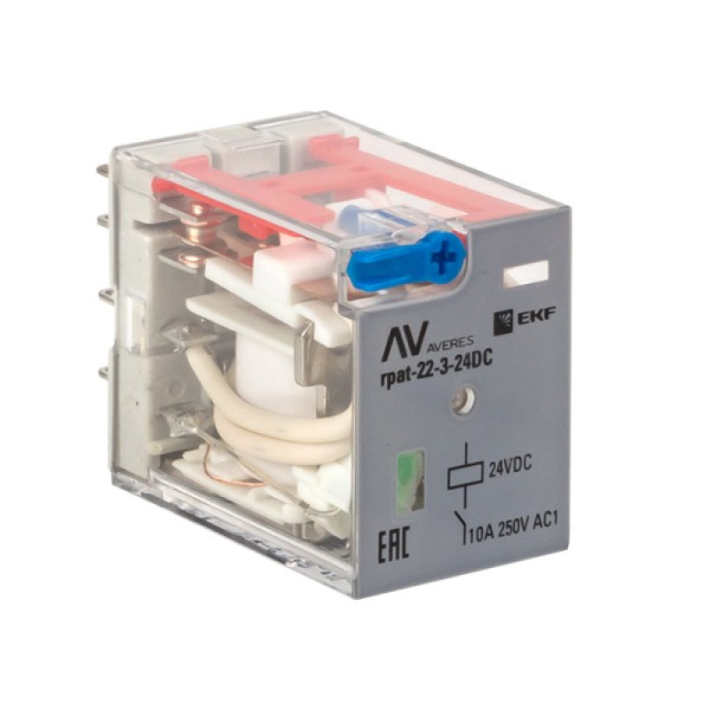 Реле промежуточное EKF Averes RPAt 22/3 10А 24В DC с кнопкой и механической индикацией