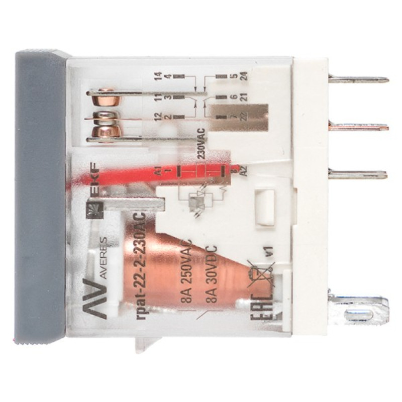 Реле промежуточное EKF Averes с кнопкой и механической индикацией 230В AC