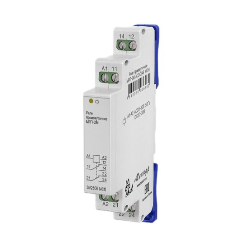 Промежуточное реле МРП-2М предназначено для дистанционного включения нагрузки, гальванической развязки силовых цепей и цепей управления, увеличения количества переключаемых групп контактов.