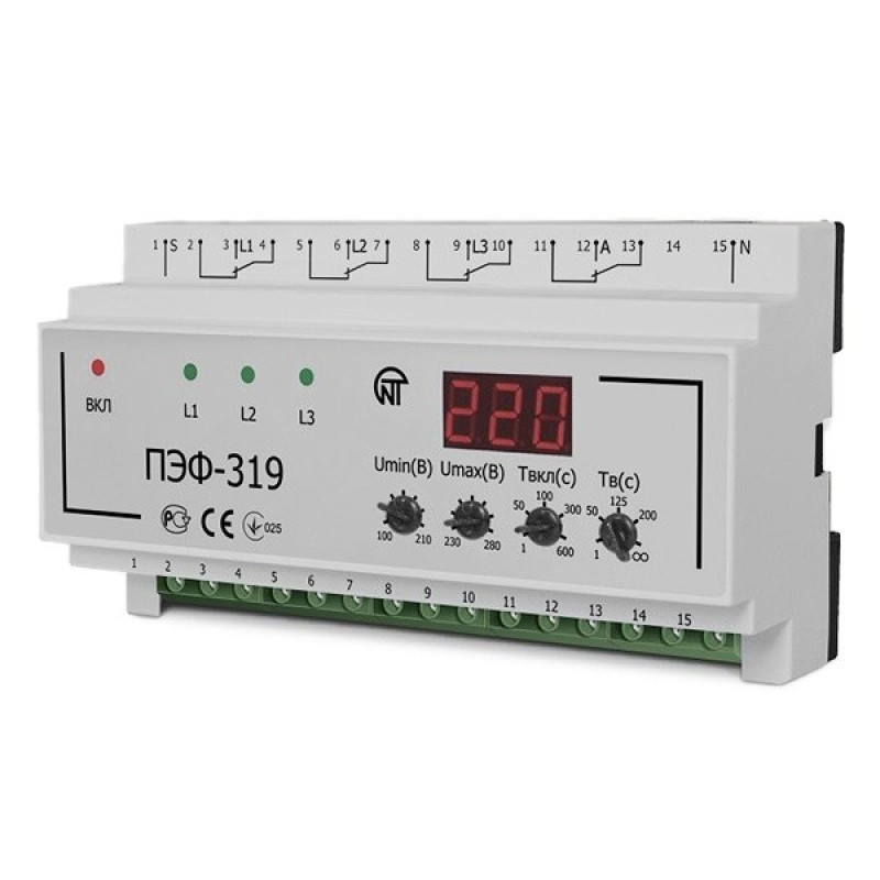 Универсальный автоматический электронный переключатель фаз ПЭФ-319 предназначен для питанияпромышленной и бытовой однофазной нагрузки 220/230 В 50 Гц от трехфазной четырехпроводной сети(3х400+N) с целью обеспечения питания особо ответственных однофазных потребителей и защиты их отнедопустимых колебаний напряжения в сети.