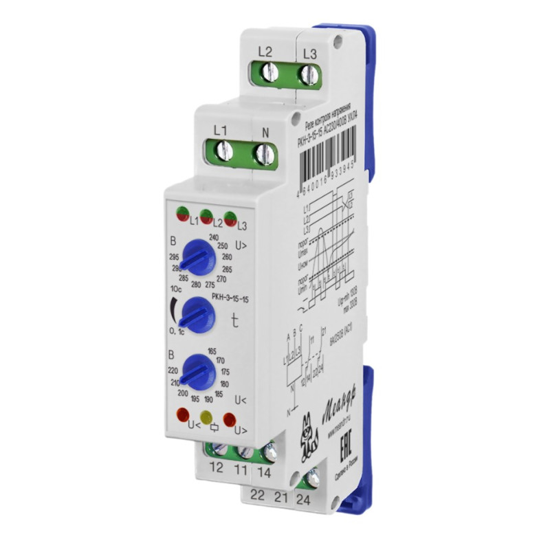 Реле контроля 3-х фазного напряжения Меандр РКН-3-15-15 АС230В/AC400В УХЛ2