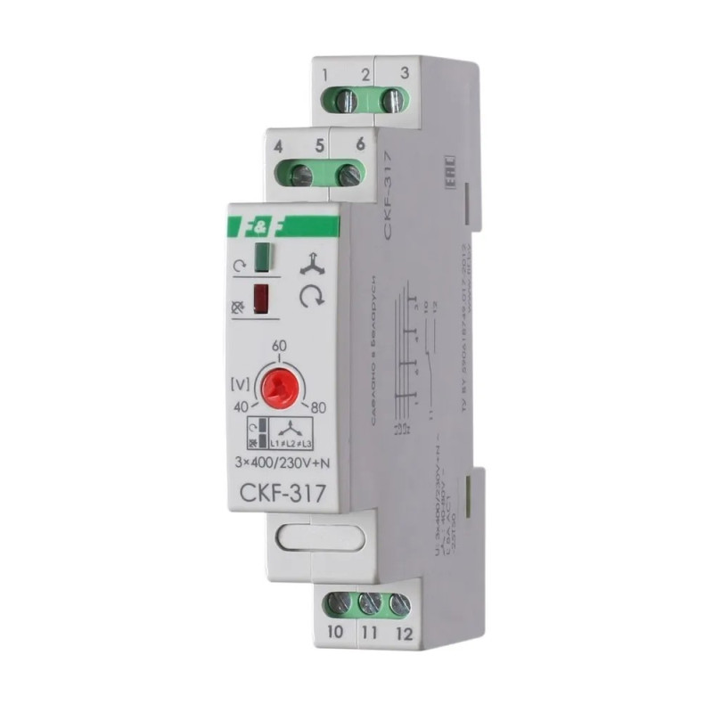 Реле контроля фаз CKF-317 предназначено для защиты электродвигателей и электроустановок, подключенных к трёхфазной сети, в случаях: