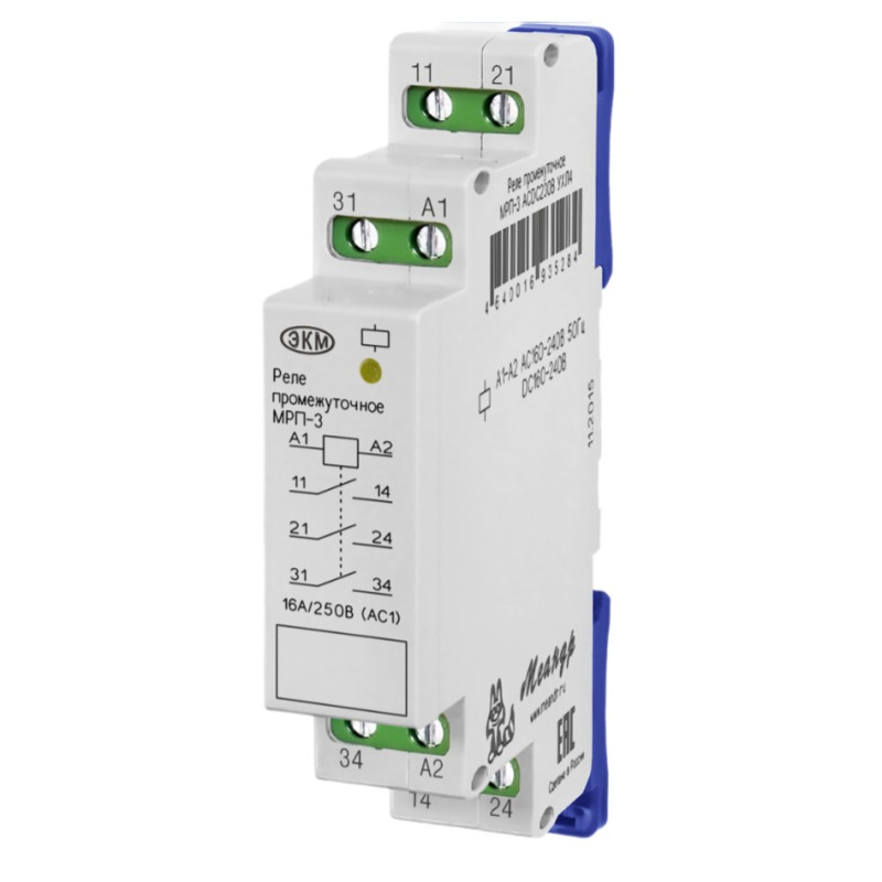 Промежуточное реле МРП-3 предназначено для дистанционного включения нагрузки, гальванической развязки силовых цепей и цепей управления, увеличения количества переключаемых групп контактов.