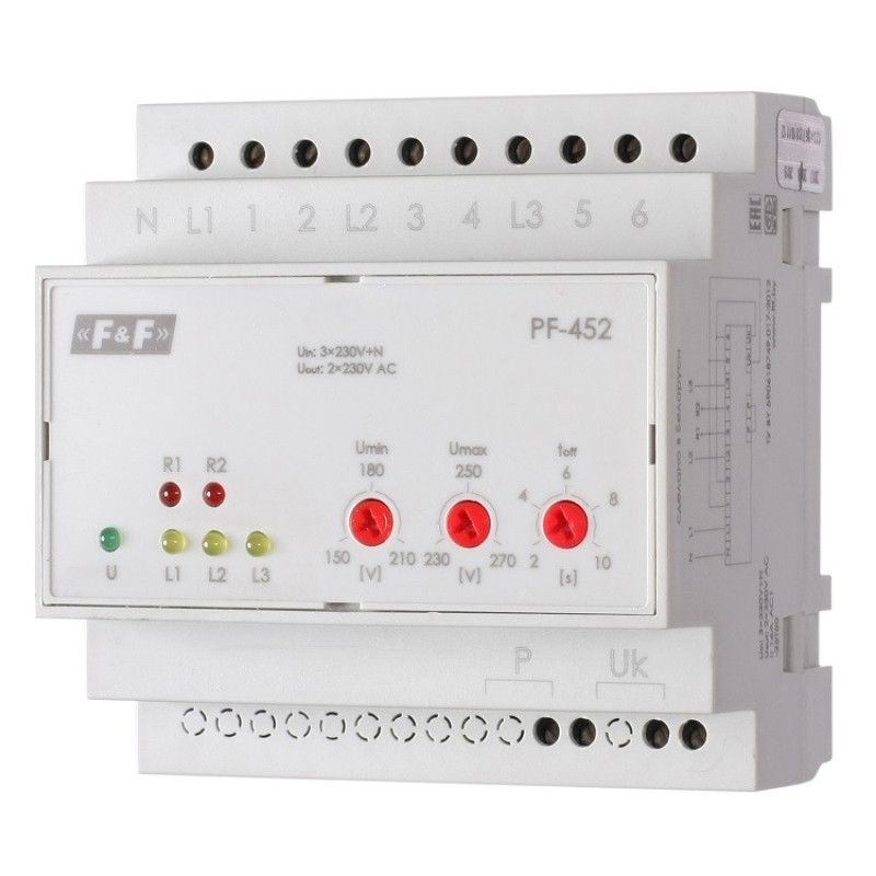 Переключатель фаз автоматический PF-452 предназначен для повышения надежности питания однофазныхпотребителей. Применяетсятам,где необходимостабильное питание особоответственныходнофазныхпотребителей и защиты ихот недопустимыхколебанийнапряжения в сети.