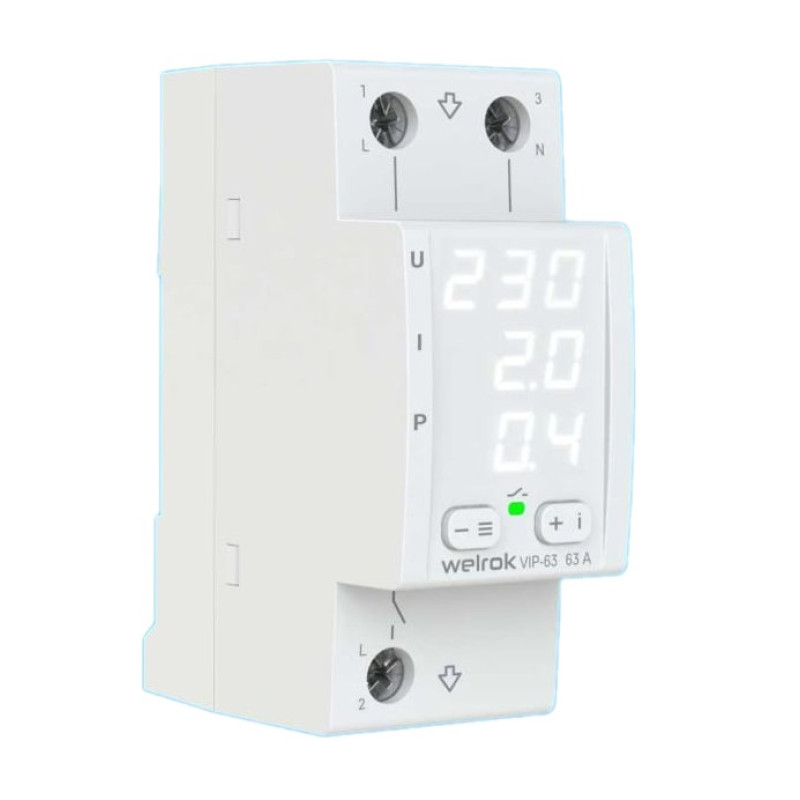 Многофункциональное реле Welrok VIP защищает оборудование от скачков и провалов напряжения, последствий обрыва нулевого провода и превышения тока или полной мощности. Реле отключает нагрузку, если напряжение, ток или мощность выходит за установленные пределы и автоматически включает нагрузку, когда значение параметра вернется в норму.