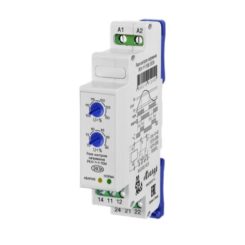 Реле контроля напряжения РКН-1-1-15М предназначено для защиты оборудования от работы на пониженном или повышенном напряжении из-за неполадок в сети. Питание реле осуществляется от контролируемого напряжения.