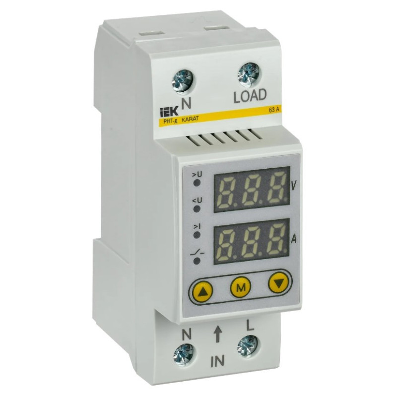 Используются для автоматического выключения питания при выходе напряжения или тока за допустимые пределы. Электронная плата анализирует параметры и выводит их на дисплей. Пределы возможно регулировать самостоятельно с помощью простого кнопочного меню. Реле напряжения устанавливается в электрических щитах квартир, частных домов и небольших коммерческих объектов для защиты электрооборудования от повреждений, вызванных длительным повышением или понижением напряжения.