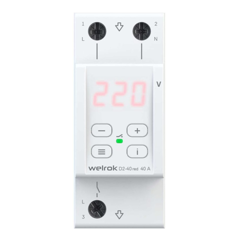 Реле напряжения Welrok d2-40 red защищает оборудование от скачков и провалов напряжения, обрыва нулевого провода. Реле отключает нагрузку, если сетевое напряжение выходит за установленные пределы. Когда значение напряжения вернется в норму, нагрузка будет автоматически включена обратно. Подключение можно сделать с транзитом или без транзита нуля через Welrok D2 red. При этом вход нуля может быть как вверху так и внизу реле.