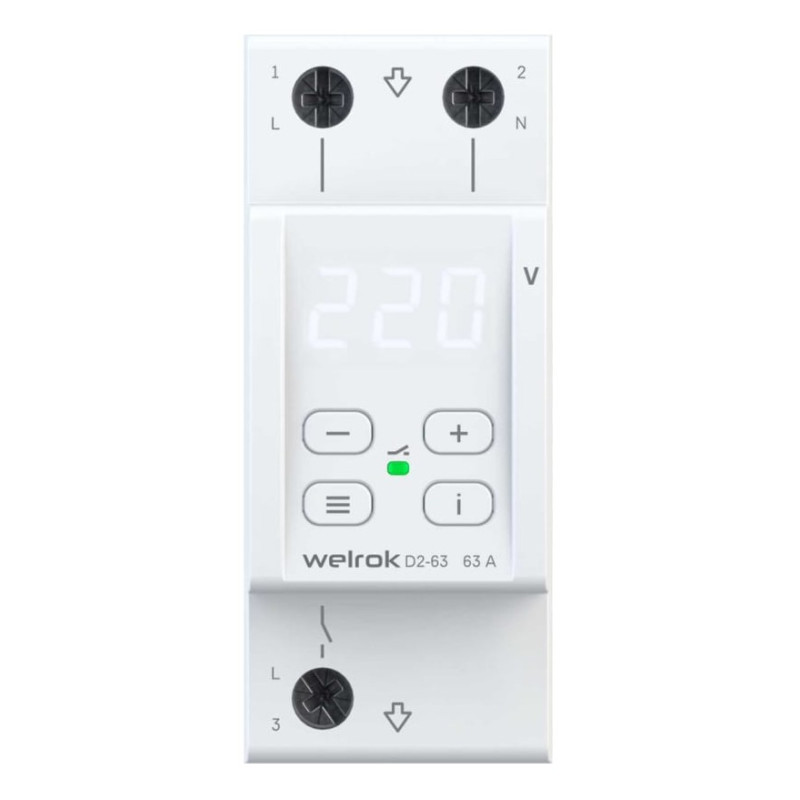 Реле напряжения Welrok d2-63 защищает оборудование от скачков и провалов напряжения, обрыва нулевого провода. Реле отключает нагрузку, если сетевое напряжение выходит за установленные пределы. Когда значение напряжения вернется в норму, нагрузка будет автоматически включена обратно. Подключение можно сделать с транзитом или без транзита нуля через Welrok D2. При этом вход нуля может быть как вверху так и внизу реле.