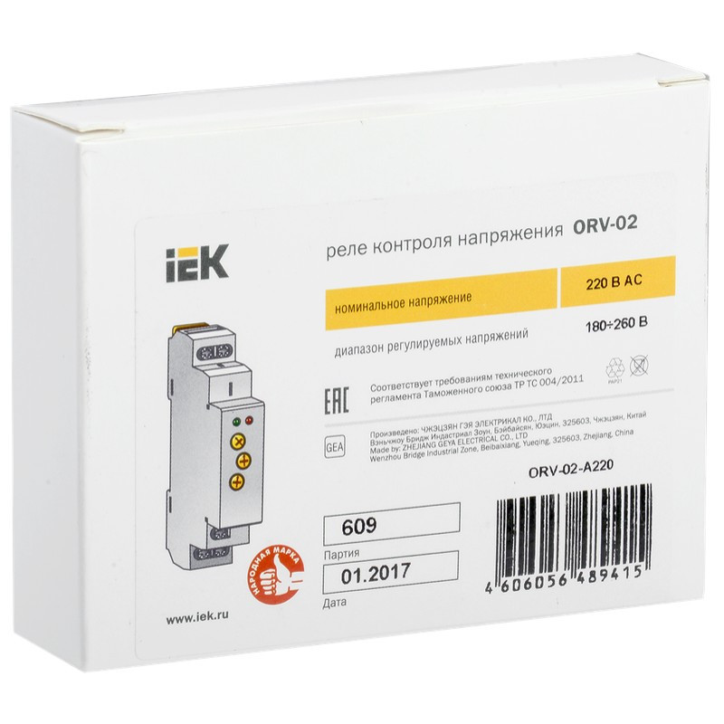 Реле повыш.напряжения ORV. 1ф 220 В AC IEK ORV-02-A220 IEK