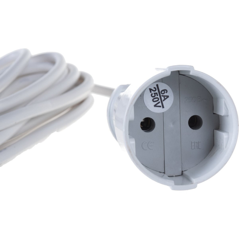 Удлинитель-шнур с переносной розеткой способен обеспечивать электроэнергией объект, находящийся до 50 м от основной питающей сети. Штепсельное гнездо изделия, универсальное, выполнено из эластичного материала ПВХ, не деформируется при падении.