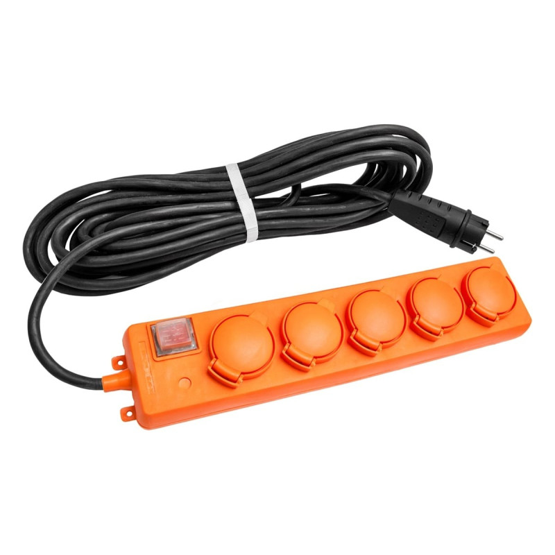 Удлинитель У10-026 IP-44 КГ 3x1,5 10м UNIVersal 9634138 имеет большое количество гнезд для возможности подключения одновременно нескольких электроприборов на удаленном расстоянии от стационарной розетки. Все розеточные гнезда оснащены подпружиненными крышками для защиты от попадания внутрь колодки загрязняющих частиц. На корпусе удлинителя расположен выключатель с подсветкой под защитным колпачком для удобства включения и отключения оборудования без необходимости отсоединения вилок.