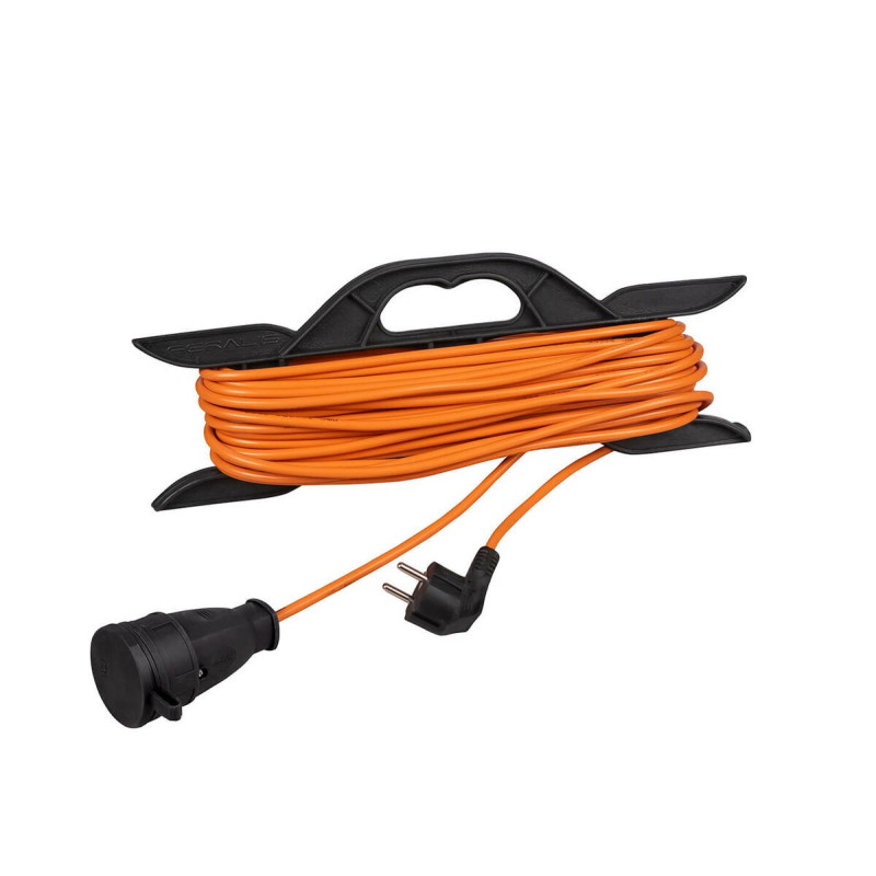 Пластиковая рамка обеспечивает более удобное хранение и переноску удлинителя. Удлинитель удобен при работе с электрическими приборами находящимися на удалении от основного источника тока. подходит для использования на загородном участке, в мастерских, в подсобном хозяйстве и пр. Яркий оранжевый кабель делает заметным удлинитель на вашем садовом участке.