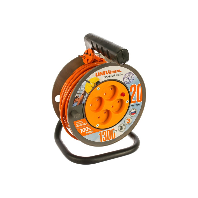 Удлинитель на катушке 4х20м без заземл. 6А IP20 У6-014 термо ПВС 2х0.75 (190мм) UNIVersal 9632057