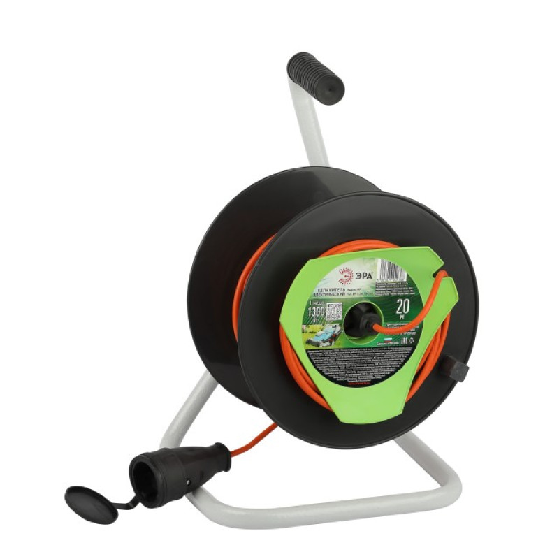 Удлинитель силовой на пластиковой катушке ЭРА RP-1-2x0.75-20m без заземления, 1 розетка, провод ПВС 2х0,75м2, 20 м. Мощность 6А/1300Вт. Степень защиты IP44. Используется для работы на строительных площадках или дачных участках. Удобен при работе с приборами, находящимися удаленно от стационарной розетки. Например, газонокосилки, электрические, пилы, триммеры или электродрели. Провод в удлинителях Эра сделан из 100% меди, что делает его абсолютно пожаробезопасным. Рама удлинителя сделана из высокопрочной стали, а пластиковой корпус выполнен с применением негорючих добавок.