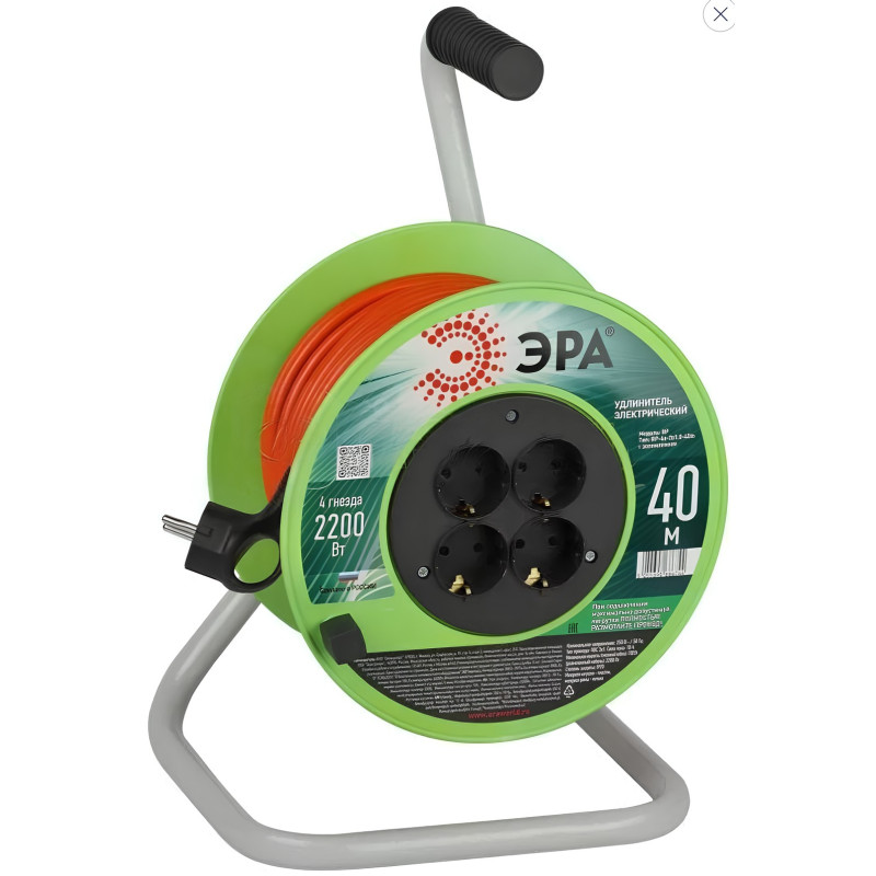 Удлинитель силовой Эра RP-4e-3х1.0-40m на пластиковой катушке с заземлением 4 розетки 40м ПВС 3х1мм2