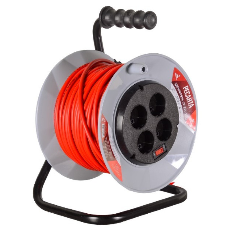 Удлинитель силовой Ресанта на катушке СУ-2х1-30/2 (с выкл., 4 розетки)