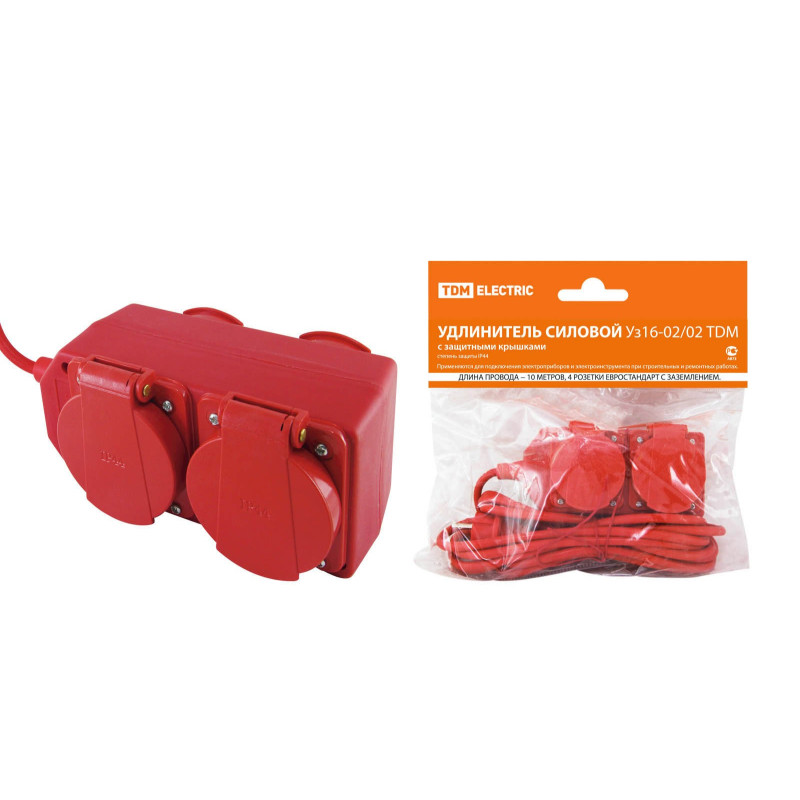 Удлинитель силовой TDM ELECTRIC Уз16-02/02 IP44 4 места 10м 3х1,0