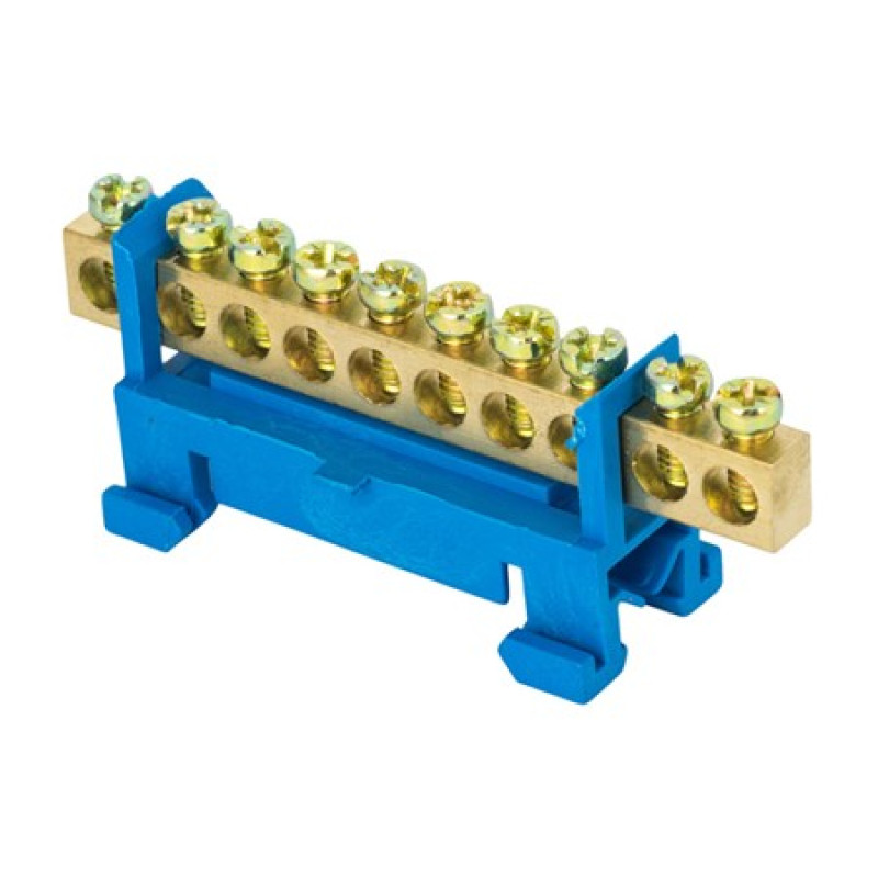 Шина 0 N 10 отверстий латунь синий изолятор тип Стойка на DIN-рейку розничный стикер PROxima