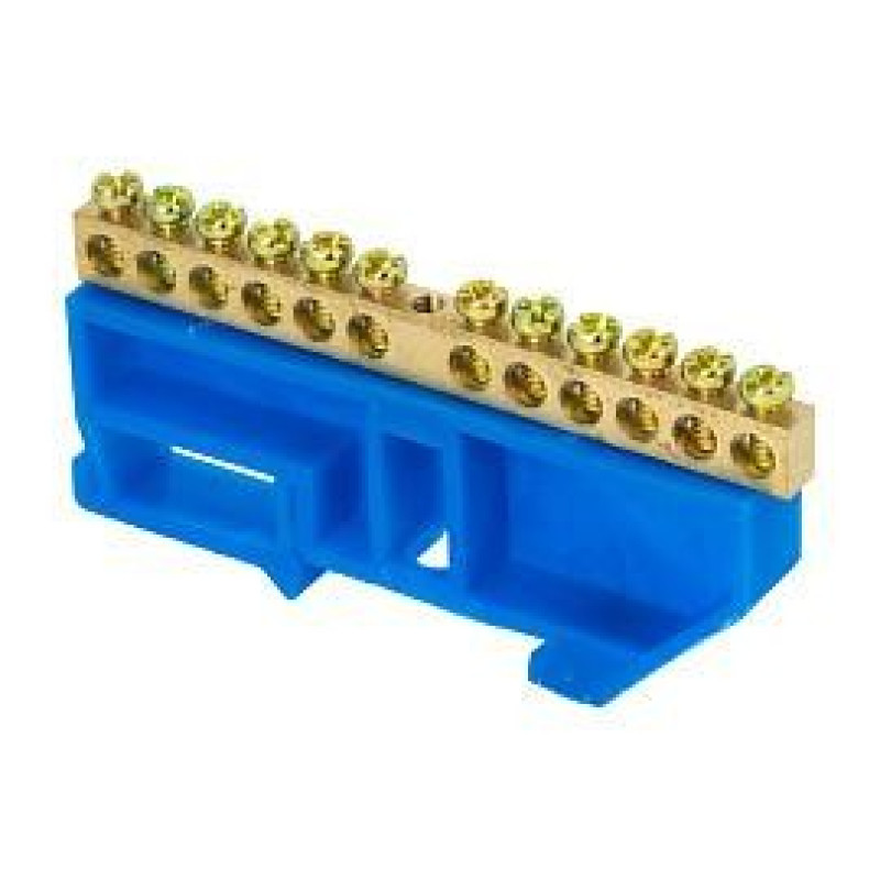 Шина 0 N (6х9мм) 12 отверстий латунь синий изолятор тип Стойка на DIN-рейку розничный стикер PROxima