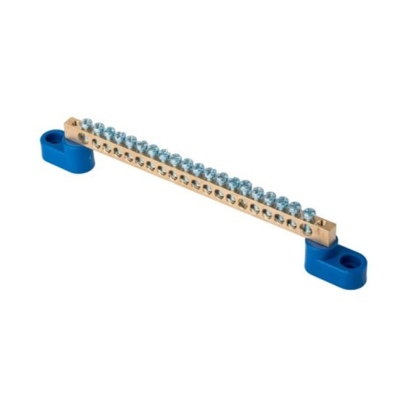 Шина "0" N (6х9мм) EKF 20 отверстий латунь 2 синих угловых изолятора PROxima sn0-2-63-20