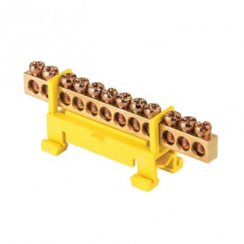 Шина 0 PE 12 отверстий латунь желтый изолятор тип Стойка на DIN-рейку PROxima