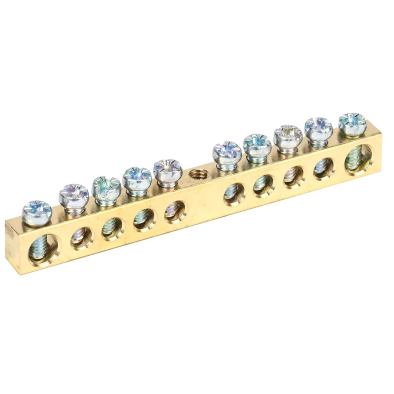 Применяются в щитовом оборудовании для подсоединения нулевых рабочих (N) и нулевых защитных проводов (РЕ). Крепление шины предусмотрено по центру (типы 8/1; 14/1) и по краям (типы 8/2 и 14/2) через изолятор нулевой шины на 35 мм монтажную DIN-рейку и через угловые изоляторы нулевой шины, а также непосредственно на панель щита. При подключении к шинам медных многожильных проводов рекомендуется оконцевание их наконечниками-гильзами. Выполнены из латуни.