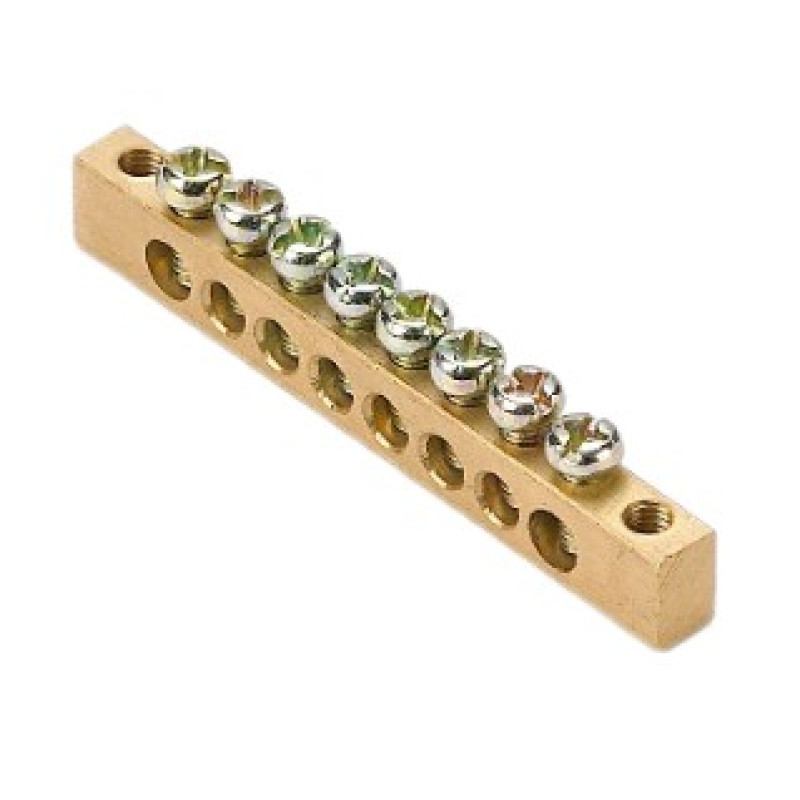 Шина нулевая серии ШН-102 DEKraft, исполнение - колодка на 8 зажимов, сечение - 6х9 мм, длина - 65 мм, максимальный ток - 100 А, материал - высококачественная электротехническая бронза, крепеж - по центру. Нулевая шина позволяет создать сразу несколько точек подключения нагрузок от общего ввода к нулевому проводнику, обеспечить неразрывность цепи на участке от заземления до конкретной нагрузки, а также выполнить разделение защитного и рабочего нулевых проводников.