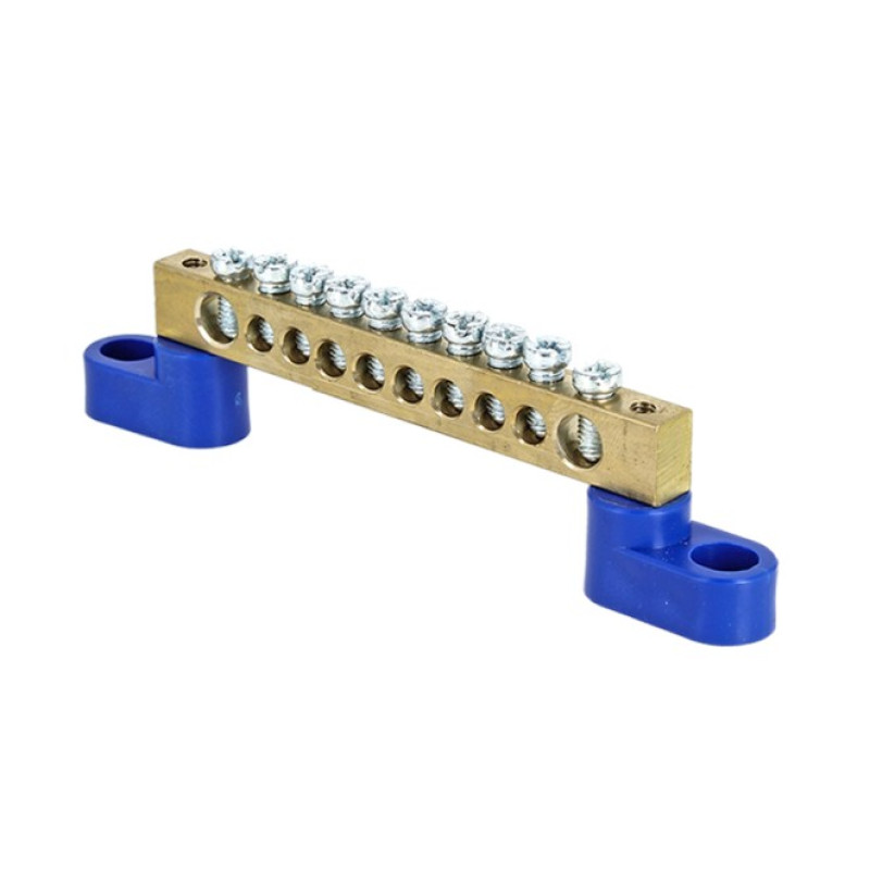 Шина нулевая EKF PROxima N 6х9 10 отверстий 2 синих угловых изолятора латунь