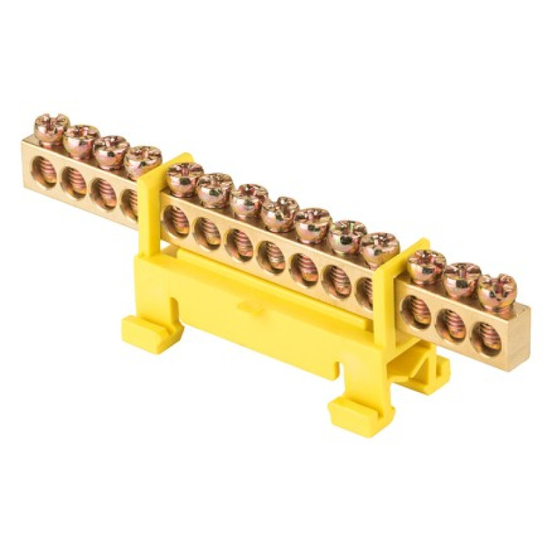 Шина нулевая EKF PROxima PE 6х9 14 отверстий желтый изолятор тип стойка на DIN-рейку латунь