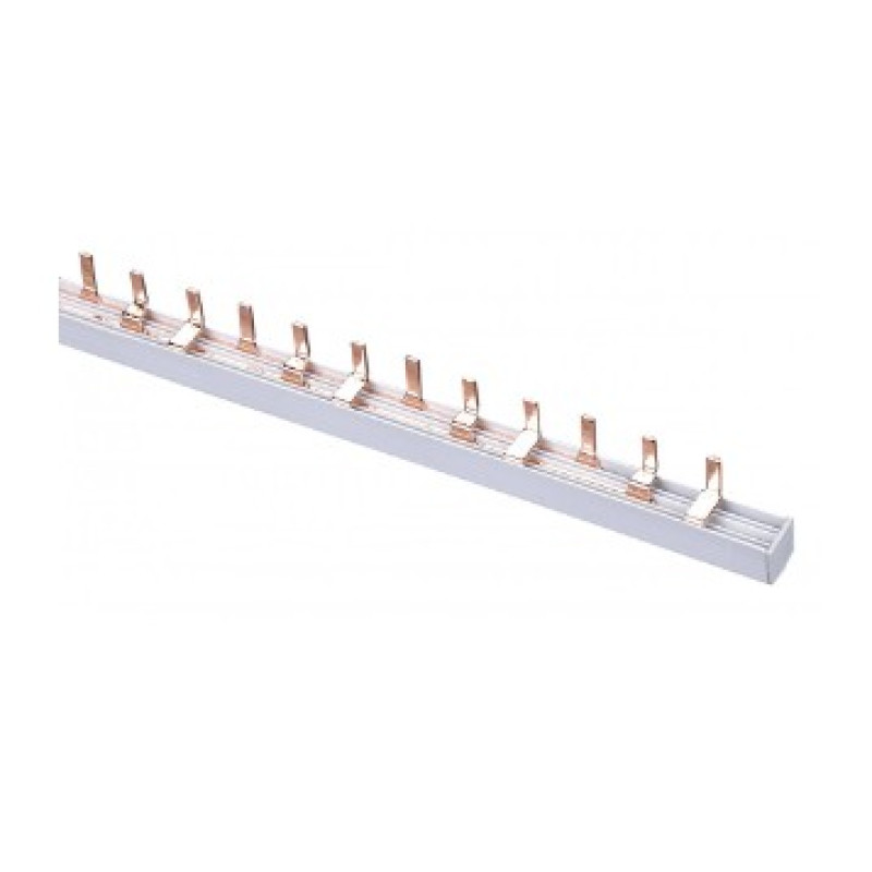Шина соединительная серии ШС-101 DEKraft , трехполюсная, номинальный ток - 75 А, номинальное напряжение - 220/415 В,тип - PIN (штырь), сечение шины - 16 кв.мм, дина - 1 метр, кол-во контактов - 18х3. Шина предназначена для быстрого, удобного и безопасного соединения автоматических выключателей, УЗО, АВДТ и прочих модульных аппаратов.