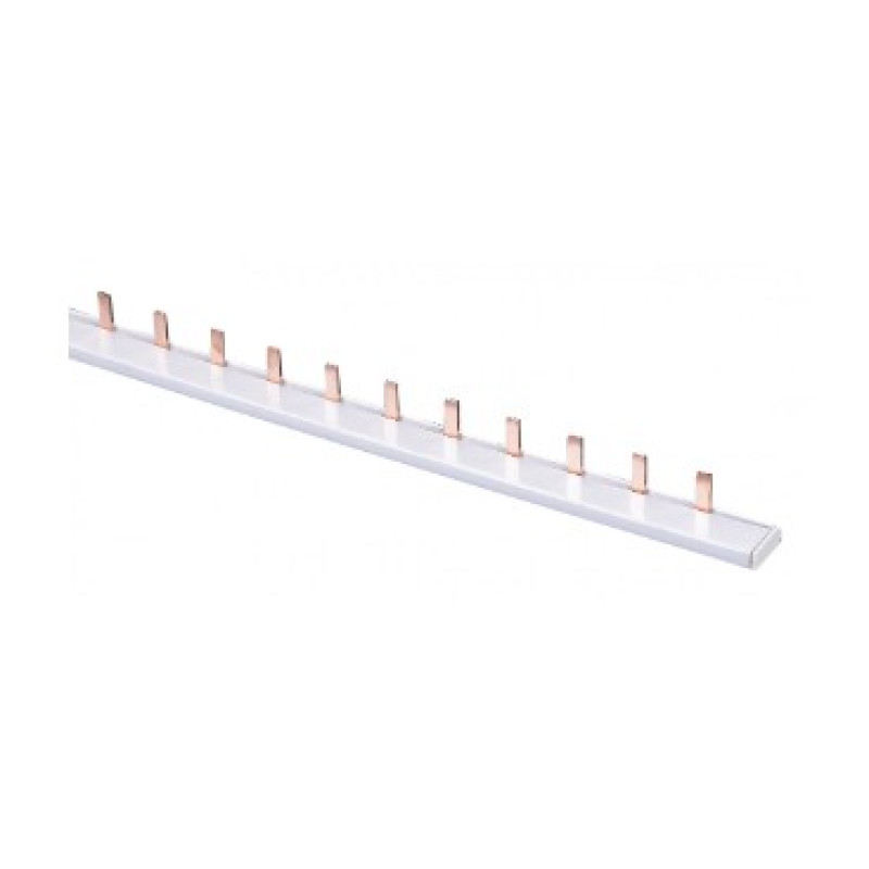 Шина соединительная серии ШС-101 DEKraft , однополюсная, номинальный ток - 63 А, номинальное напряжение - 220/415 В, тип - PIN (штырь), сечение шины - 10 кв.мм, дина - 1 метр, кол-во контактов - 54х1. Шина предназначена для быстрого, удобного и безопасного соединения автоматических выключателей, УЗО, АВДТ и прочих модульных аппаратов.