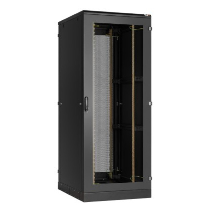 Напольный шкаф 19", 42U, двери перфорированные, одностворчатая и двустворчатая, металлические стенки, Ш600хВ2010хГ1000мм, в разобранном виде, черный