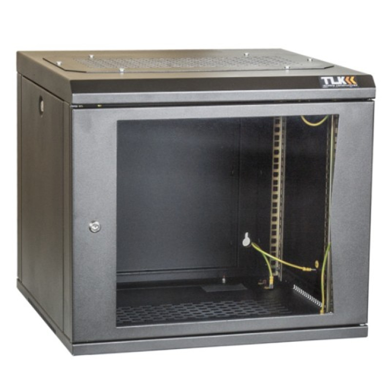 Настенный разборный шкаф TLK 19", 6U, стеклянная дверь, Ш600хВ303хГ450мм, 1 пара монтажных направляющих, черный