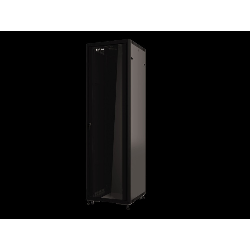 Шкаф напольный 19" Netko 42U серия Optima (600х800х2022), передняя дверь стекло, черный, разобранный (упакован в 3 коробки)