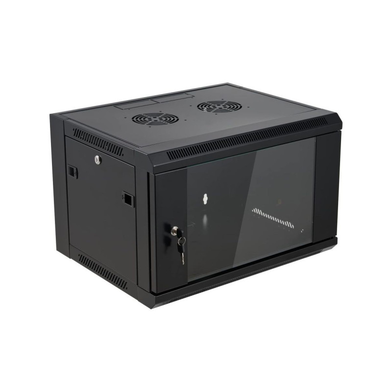Шкаф настенный 9U Netko серия WMA (Wall Maestro) (600х600х500), передняя дверь стекло, разборный, черный "А"
