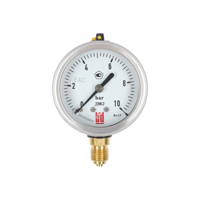Манометр ДМ 2 для измерения давления газообразных и жидких, не сильно вязких и не кристаллизирующихся сред, не агрессивных по отношению к медным сплавам (вода, пар, газ, масло, керосин, бензин, дизельное топливо и др). Устанавливается в местах с повышенной вибрацией или при наличии пульсаций.