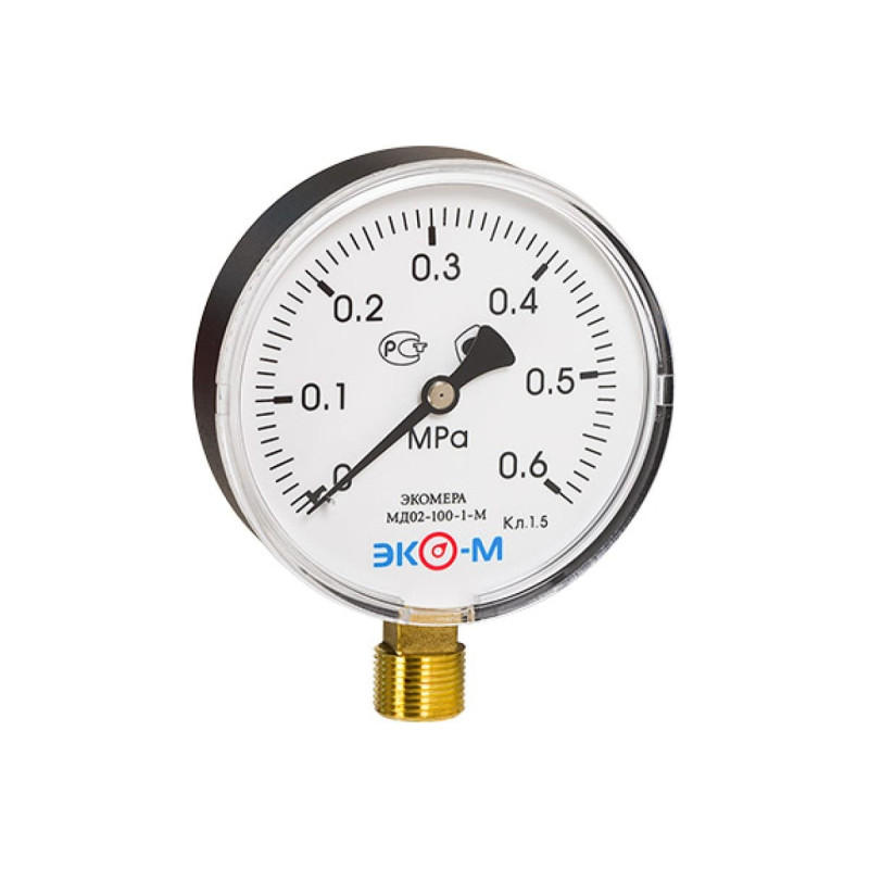 - Манометр ЭКОМЕРА радиальный МД02 0-1,6МПа (0-16бар) Дк160 G1/2"