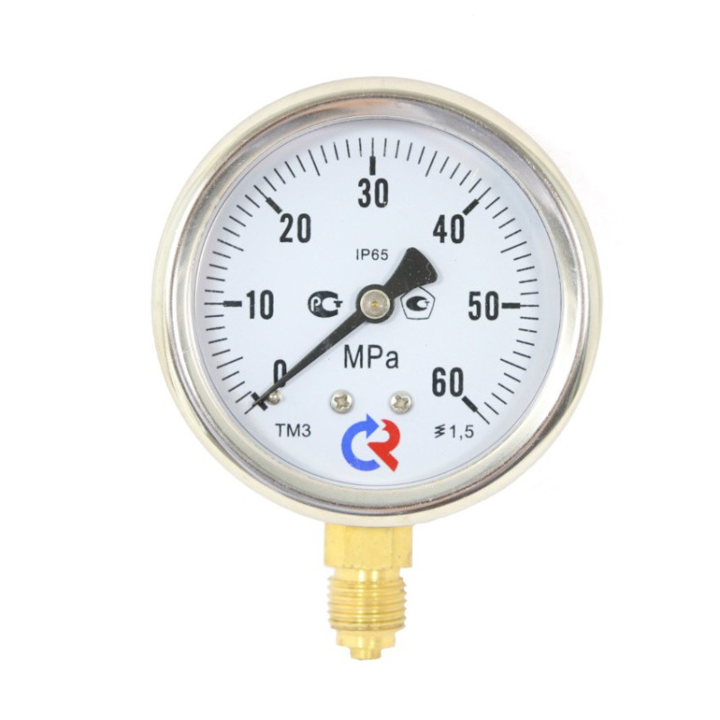 Промышленный манометр в корпусе из нержавеющей стали с возможностью гидрозаполнения (виброустойчивый). Применяется для измерения давления неагрессивных к медным сплавам жидких и газообразных, не вязких и не кристаллизующихся измеряемых сред с температурой до 150 °C. Этот тип манометра может использоваться в условиях повышенной вибрации и при измерении переменного давления. Повышенная устойчивость к воздействию окружающей среды — степень защиты прибора IP65.