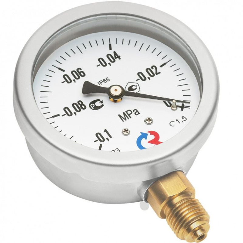 Промышленный мановакуумметр в корпусе из нержавеющей стали с возможностью гидрозаполнения (виброустойчивый). Применяется для измерения давления неагрессивных к медным сплавам жидких и газообразных, не вязких и не кристаллизующихся измеряемых сред с температурой до 150 °C. Этот тип манометра может использоваться в условиях повышенной вибрации и при измерении переменного давления. Повышенная устойчивость к воздействию окружающей среды — степень защиты прибора IP65.