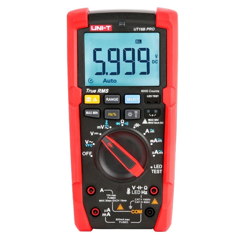 Предназначен для широкого спектра измерений и диагностики. Используется в электронике, электротехнике и многих других областях. Прибор измеряет истинное среднеквадратичное значение True RMS. Функция VFC (Variable Frequency Control) позволяет мультиметру автоматически определять и настраивать диапазон частот в зависимости от измеряемого сигнала, что обеспечивает более точные результаты измерений в различных условиях. Благодаря ЖК-дисплею большого размера, информация об измерениях отображается ярко и четко, обеспечивая удобство при работе в различных условиях освещения. Также предусмотрены такие функции, как защита от перегрузки 1000 В, фонарик и автоматическая подсветка.