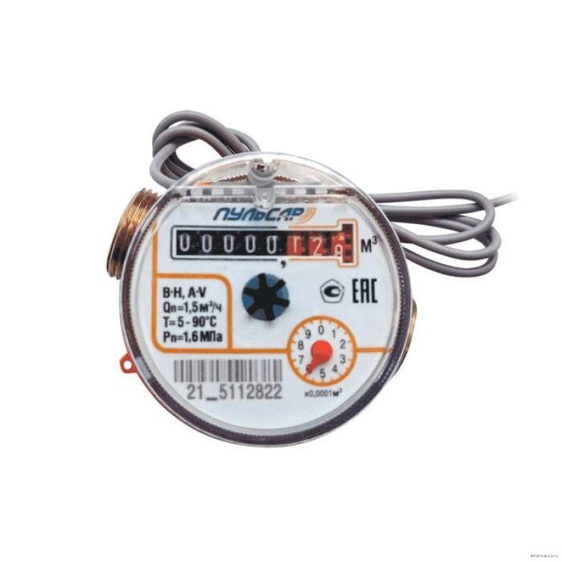 Квартирный счетчик воды «Пульсар ПРО» Ду15 импульсный выход, Qn=1,5 м3/ч, L=80мм, (присоединители с обратным клапаном в комплекте)
