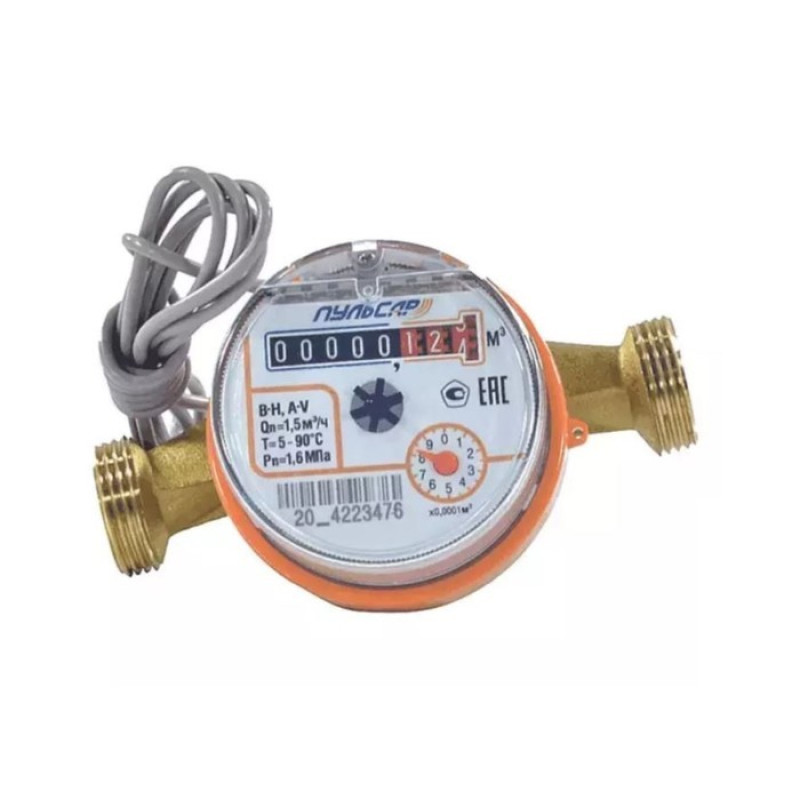 Счетчик г/в х/в Пульсар Ду15 90С L=110 10л/имп в/к кл 3 года